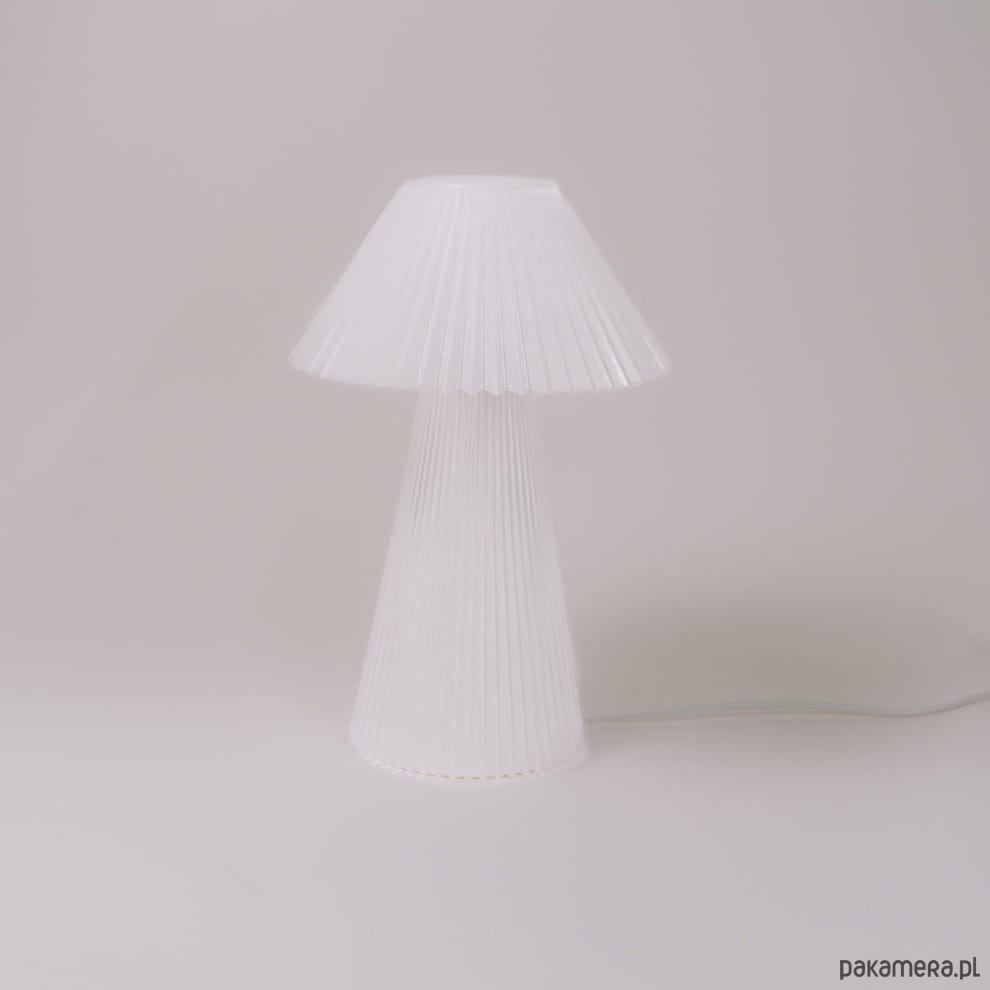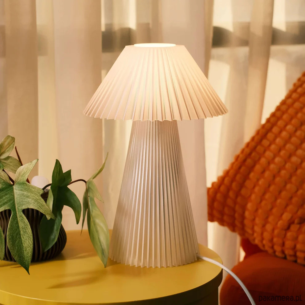 PILS łączy nowoczesny design z klasyczną formą plisowanego klosza. Dzięki głębokiej, regularnej strukturze lampa miękko rozprasza światło, tworząc w pomieszczeniu przytulną atmosferę. Kompaktowe wymiary sprawiają, że idealnie sprawdza się na biurku, stoliku nocnym lub jako nastrojowe oświetlenie dodatkowe w salonie.