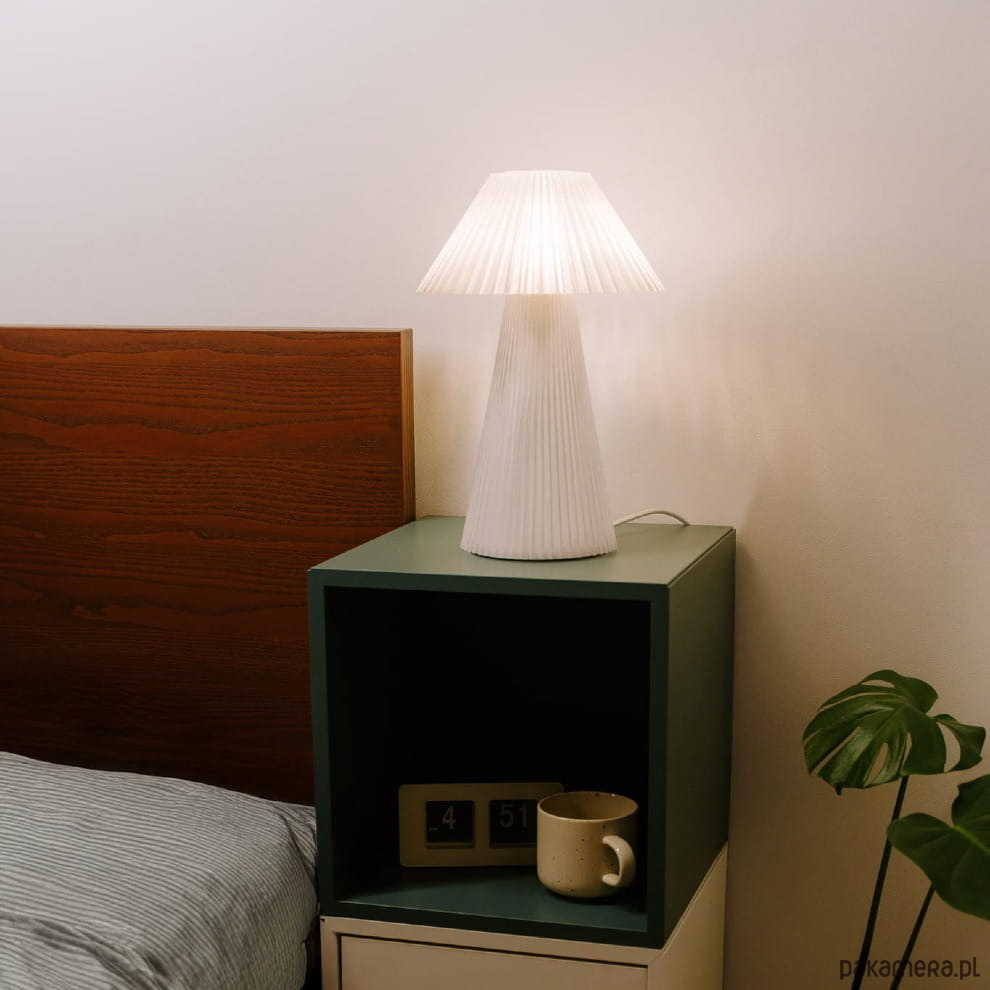 Minimalizm w nowej strukturze Lampa PILS White to połączenie sentymentu do plisowanych abażurów z precyzją druku 3D. Charakterystyczna, głęboka struktura klosza w białym wydaniu sprawia, że światło rozchodzi się wyjątkowo czysto i równomiernie, rozjaśniając pomieszczenie i tworząc kojącą atmosferę. To projekt, który przyciąga wzrok detalami, a jednocześnie dba o Twój komfort po zmroku.