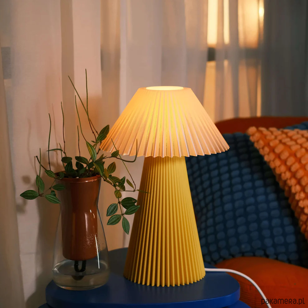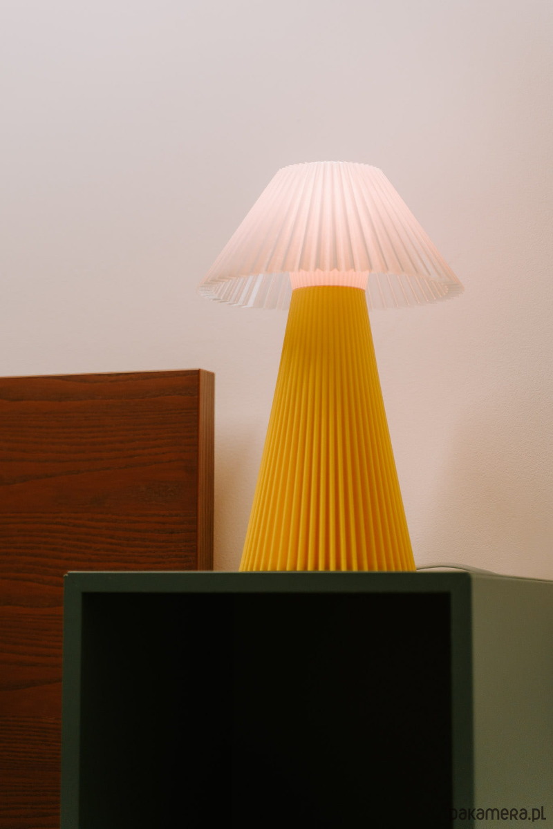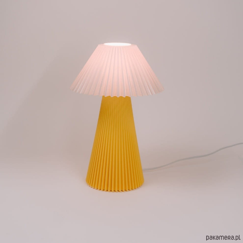 Odważny design i przytulność Lampa PILS Yellow to połączenie sentymentu do plisowanych abażurów z precyzją druku 3D. Charakterystyczna, głęboka struktura klosza sprawia, że żółty kolor nabiera wielowymiarowości, a emitowane światło staje się jeszcze cieplejsze i bardziej słoneczne. To projekt, który przyciąga wzrok i wnosi pozytywną energię do każdego pomieszczenia.