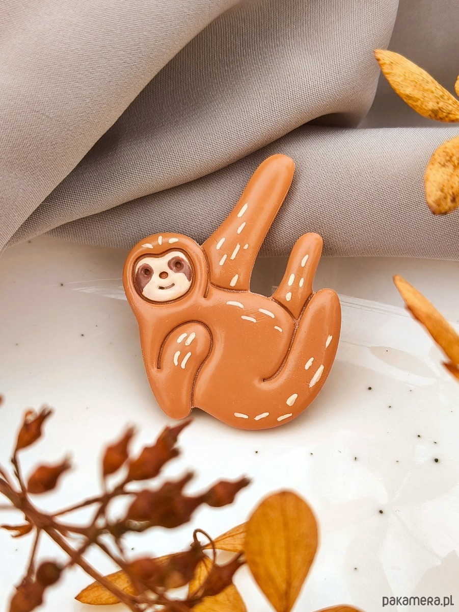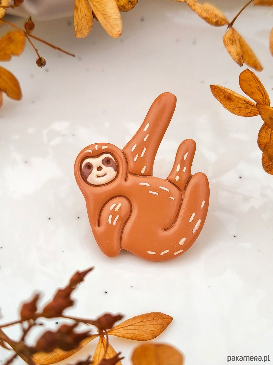 Pin leniwiec, przypinka z wizerunkiem leniwca, broszka do swetra, boho