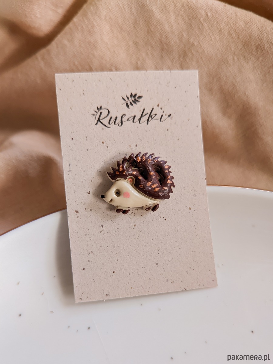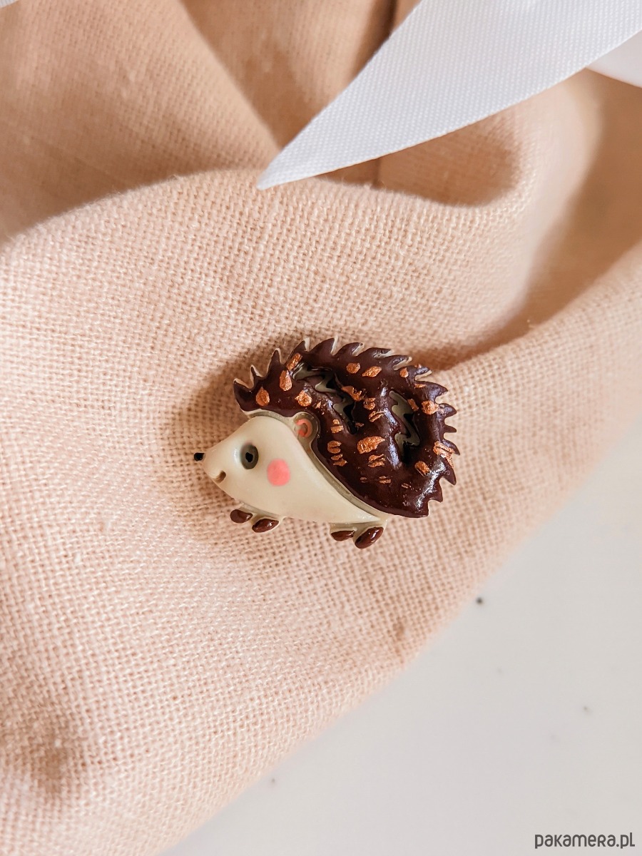 Pin przypinka jeż, jeżyk, boho akcesoria z jeżykiem, rustykalne dodatki