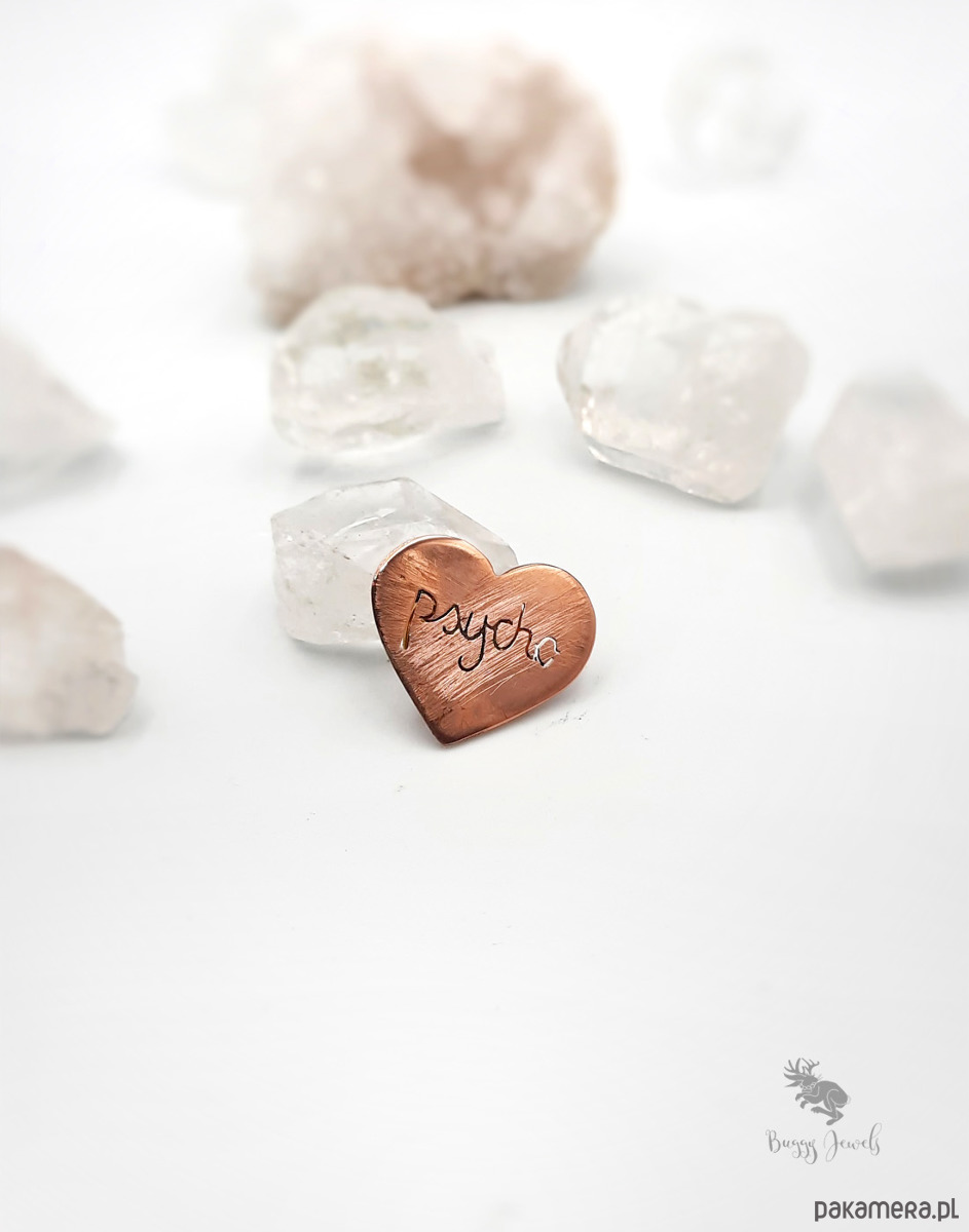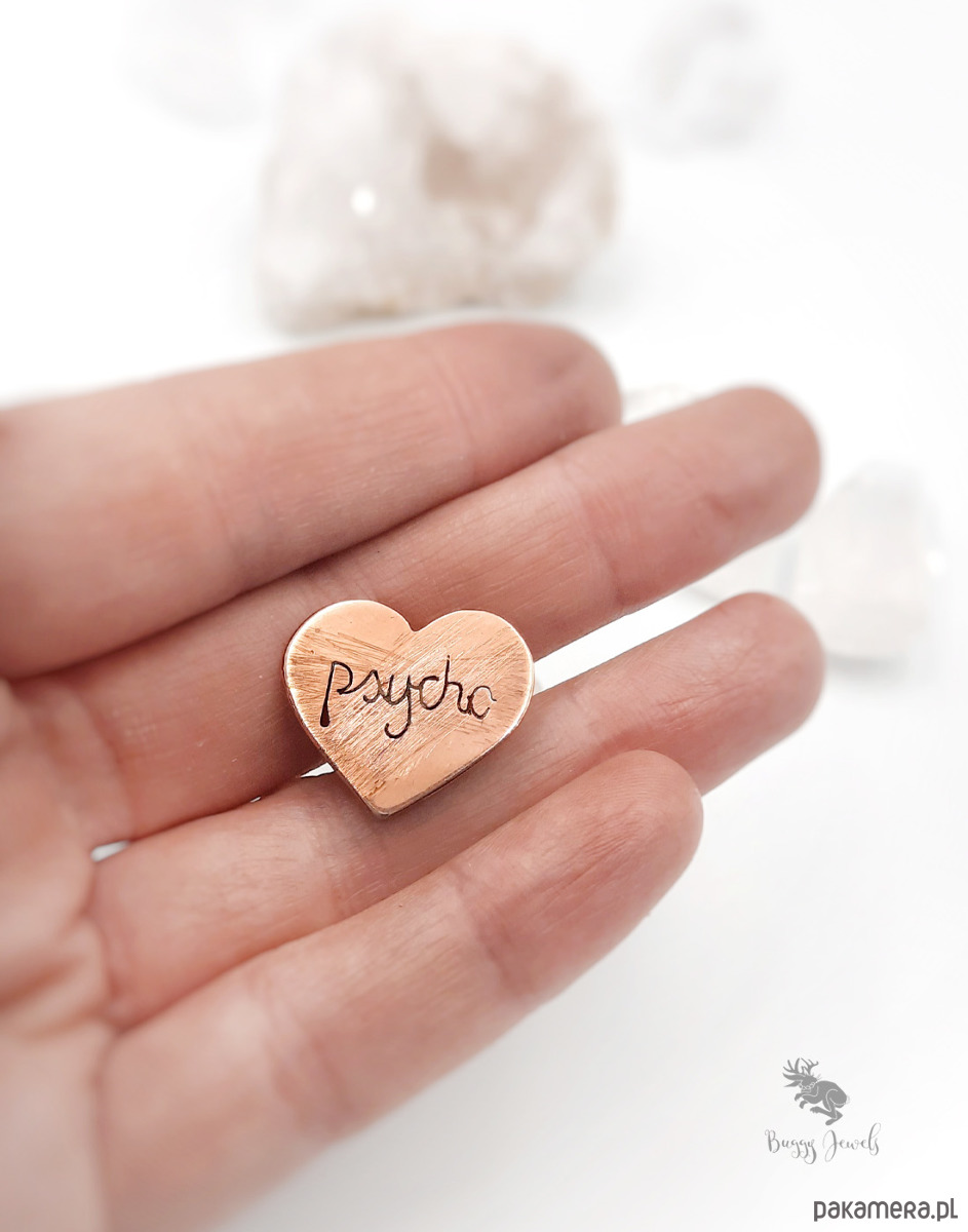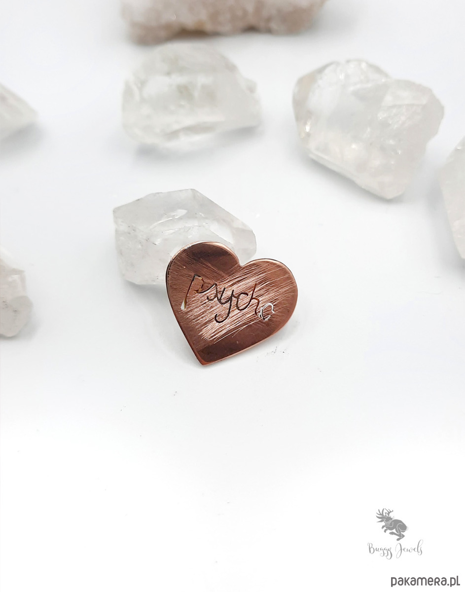 Pin wykonany z miedzi . Zapięcie z tyłu: igła i zacisk.