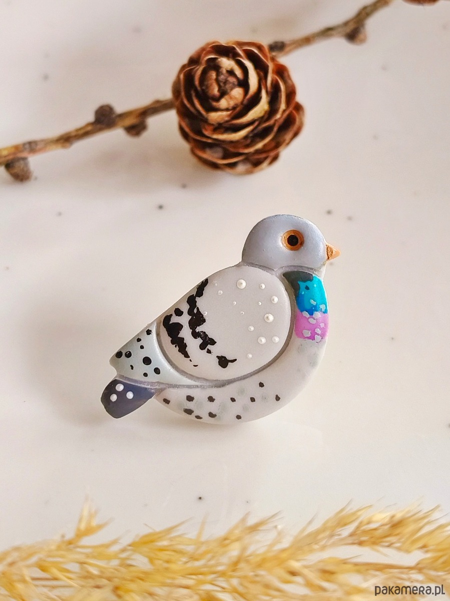 Pin z gołębiem, broszka z podobizną gołębia, przypinka z ptaszkiem