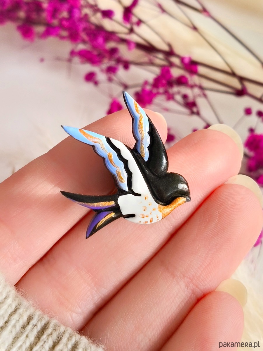 Pin z jaskółką, przypinka dla orintologa, akcesoria z ptakami, mały upominek