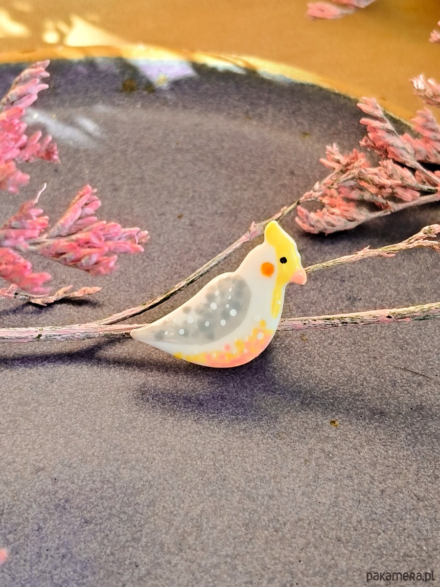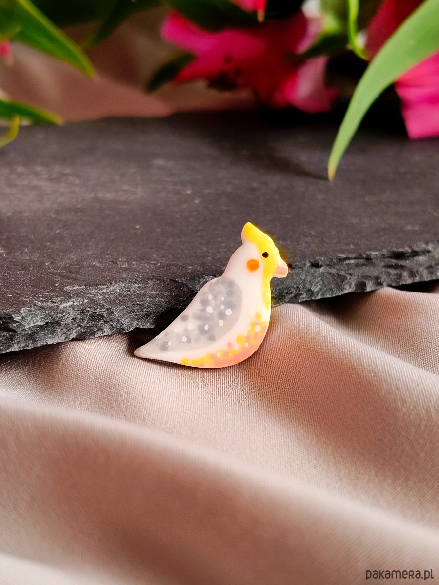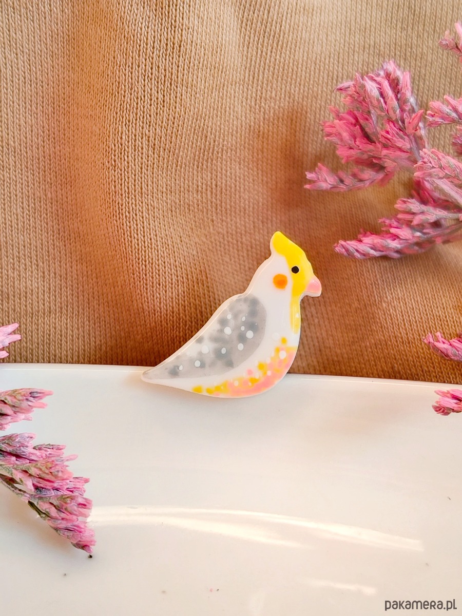 Pin z papugą nimfą to biżuteria inspirowana egzotycznymi ptakami i domowymi pupilami. Kolorowa forma sprawia, że jest to dodatek radosny i wyrazisty. Idealny prezent dla fana papug, miłośnika zwierząt i osób, które lubią biżuterię z charakterem.