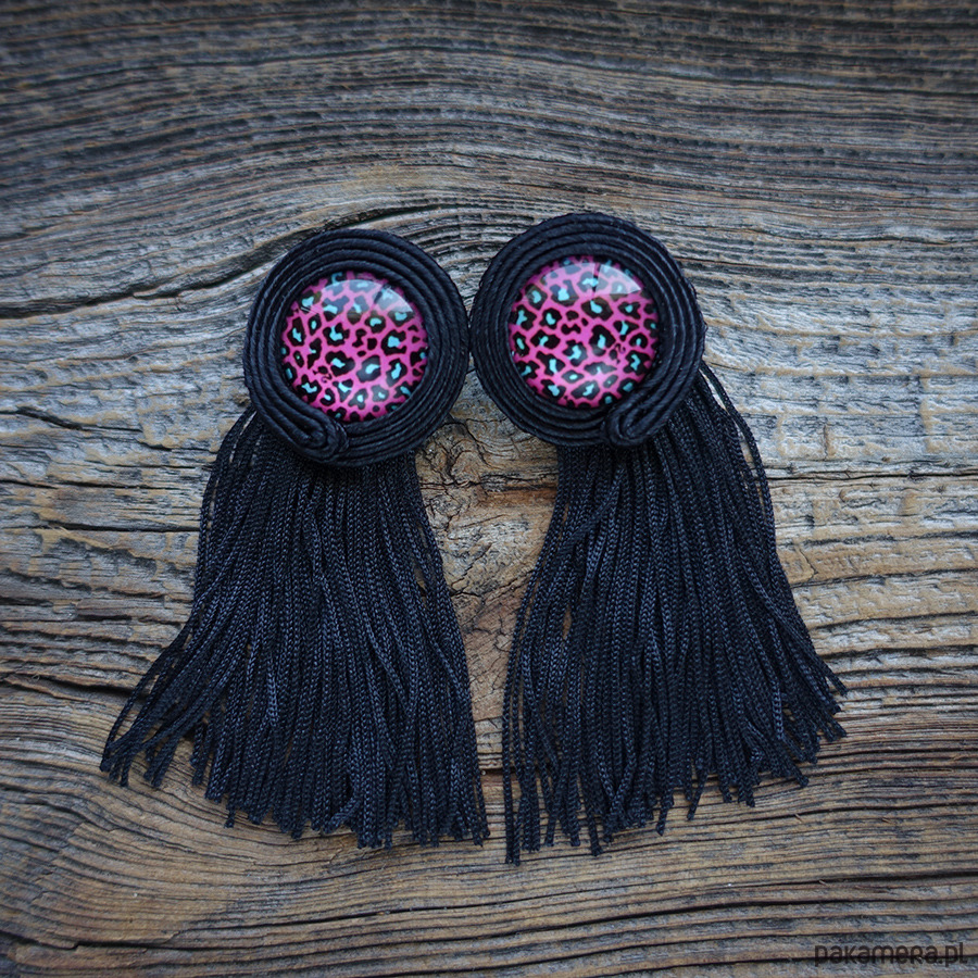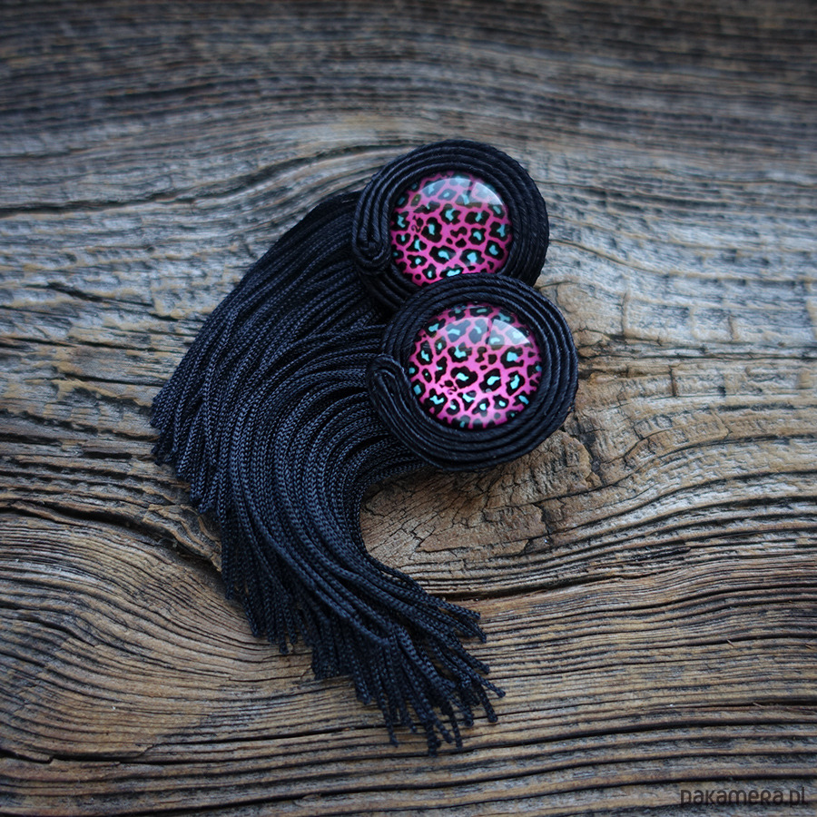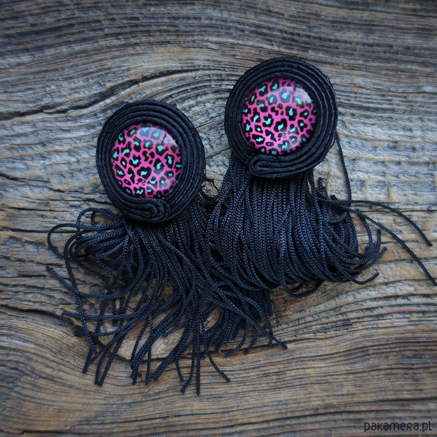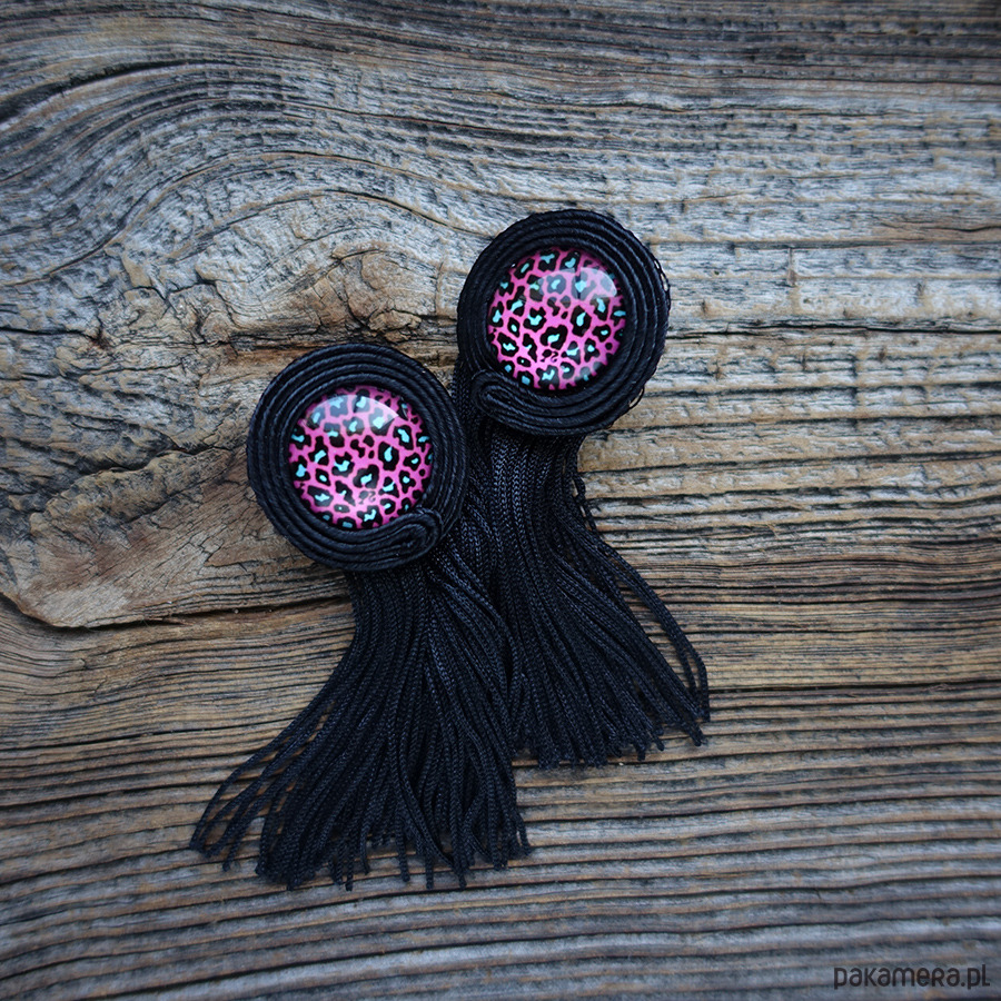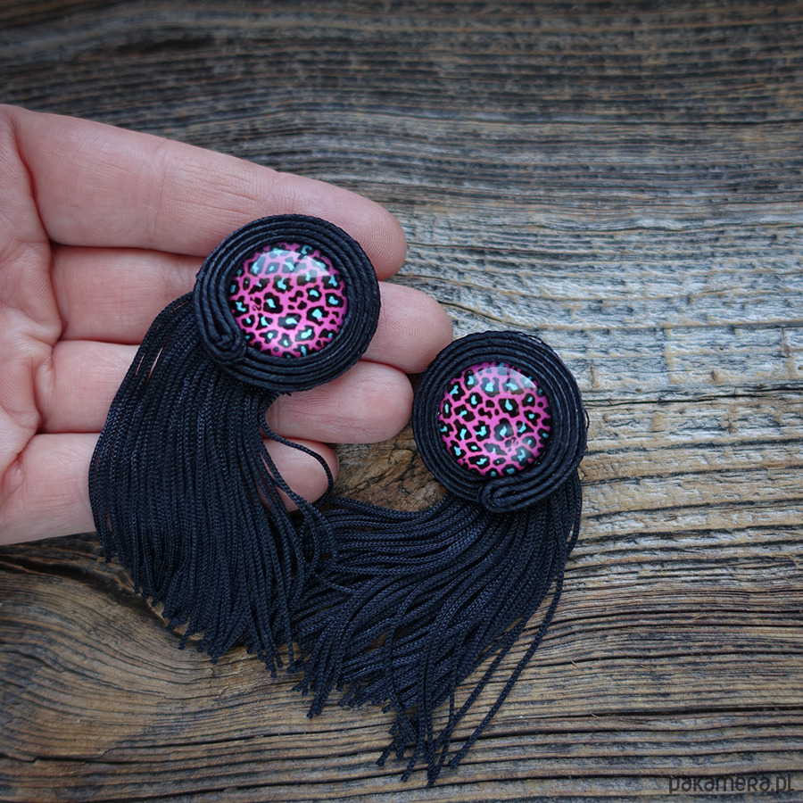 Efektowne kolczyki sutasz z cętkowanym kaboszonem w różową panterkę ;).
