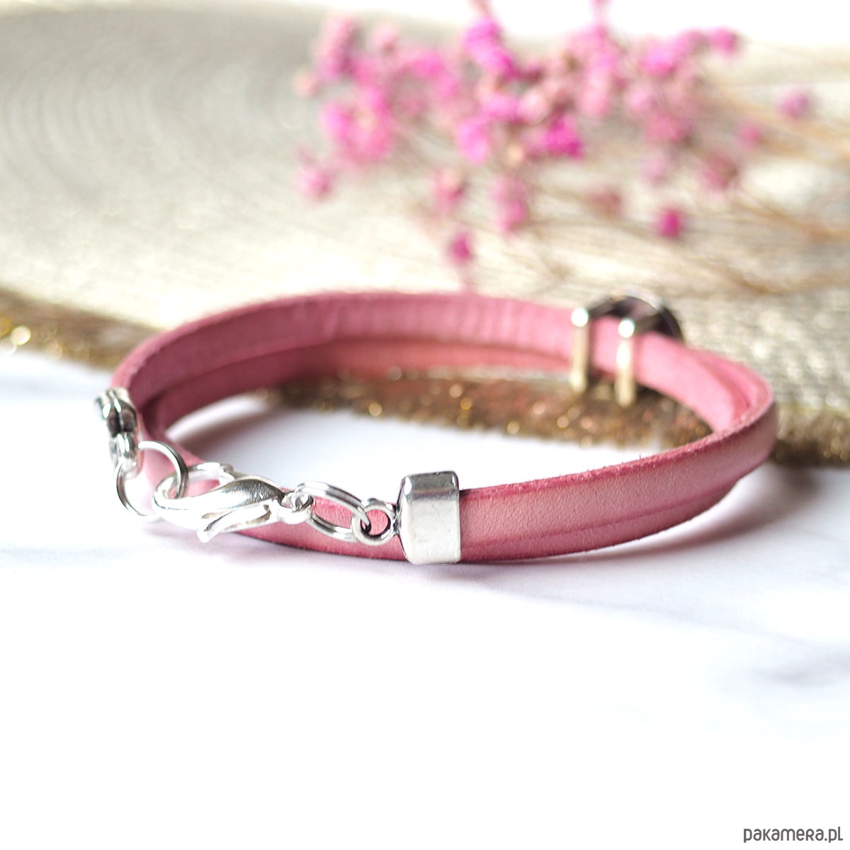 PINK STONE -SKÓRZANA BRANSOLETKA z artystyczną przekładką