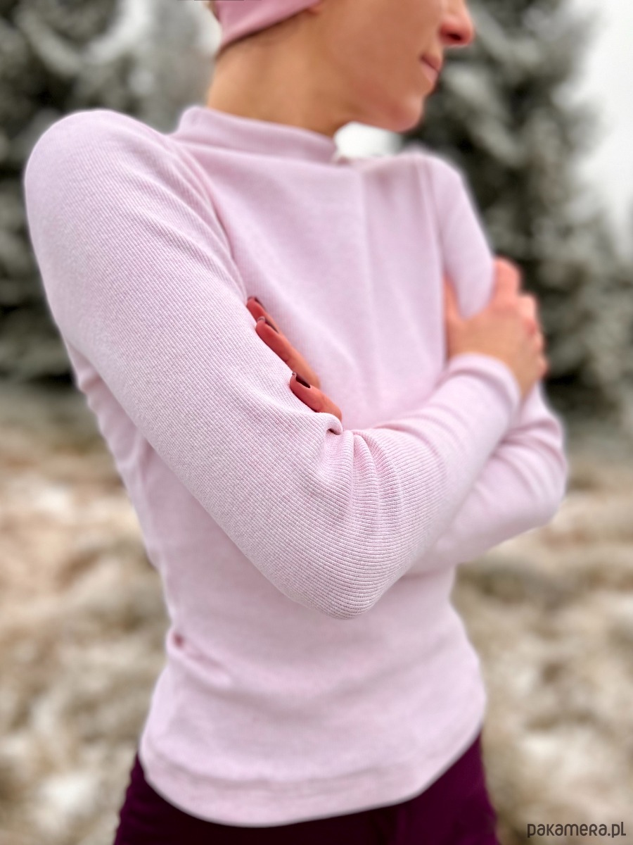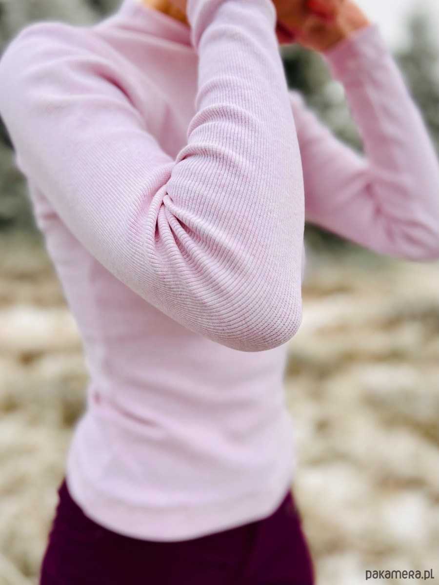 Longsleeve z prążka bawełnianego w pięknym i delikatnym odcieniu bladego melanżowego różu.
