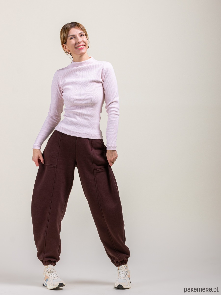 Jest świetną bazą dla swobodnych stylizacji i spodni. Idealnie sprawdzi się jako góra do spódnic. Ciepły, ładnie układa się na ciele, lecz nie opina i nie ogranicza.