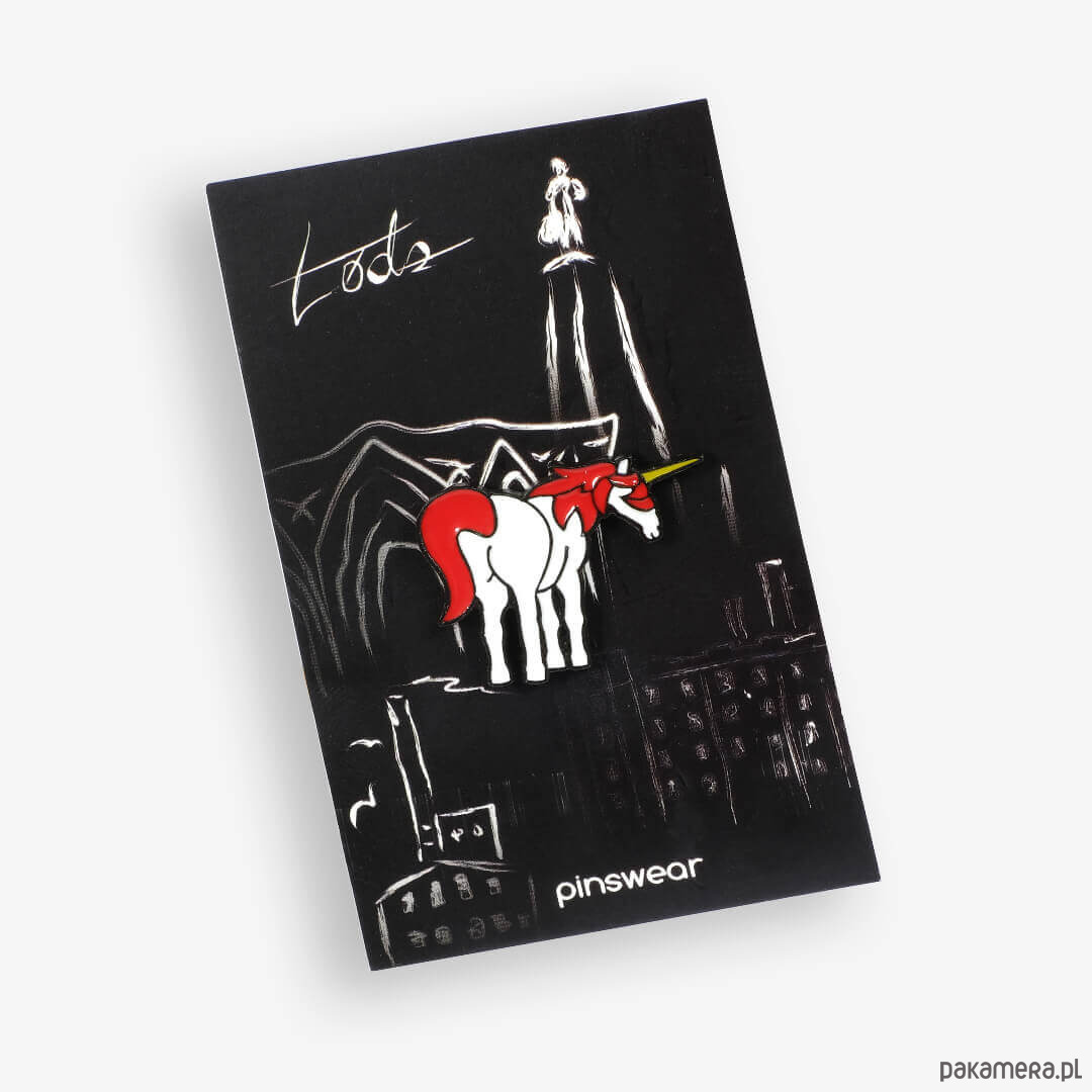 Ten nietuzinkowy pin to kwintesencja łódzkiego humoru i dystansu do świata! Jednorożec z Łodzi w niecodziennej odsłonie – zabawny, nieco absurdalny. Inspirowany jednorożcem obok Stajni, będącej jednym z najbardziej rozpoznawalnych punktów w Łodzi, doskonale wpisuje się w lokalny klimat miasta pełnego kontrastów i kreatywności.