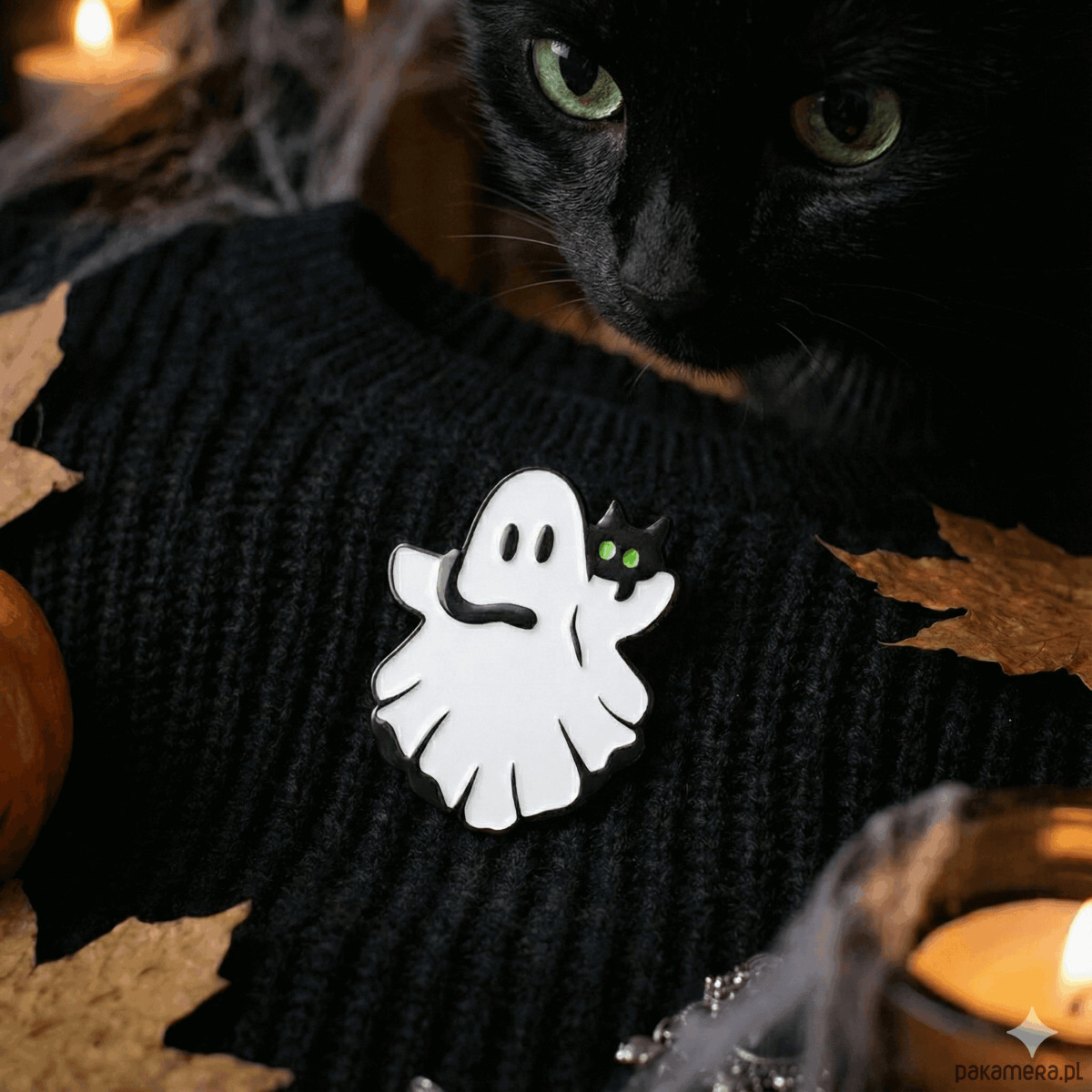 Pins „Nocny Koci Duch” to połączenie uroku Halloween i ciepła przyjaźni. Idealna dla tych, którzy lubią mrok z przymrużeniem oka i wierzą, że nawet duch potrzebuje swojego kota.