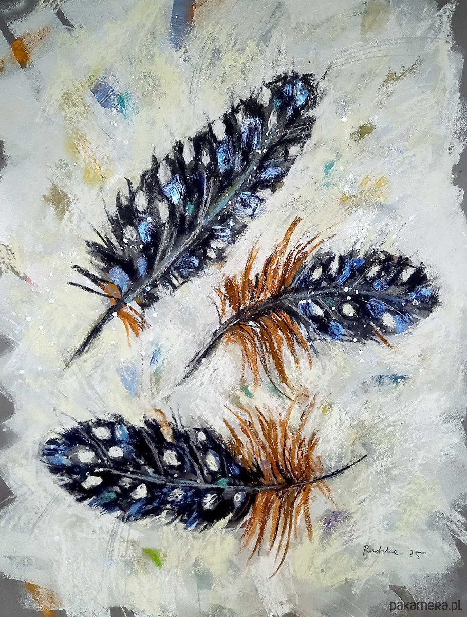 Rysunek wykonany pastelami suchymi, węglem, akrylami perłowymi, tuszem i kredkami akwarelowymi na brystolu 50x70 cm, zabezpieczony fiksatywą, bez ramy. Na życzenie tworzę symulację kolorystyczną passe partout pasującego do rysunku. Kolory mogą nieznacznie odbiegać od oryginału w zależności od ustawień monitora. Pracę wysyłam w tubie przesyłką priorytetową.