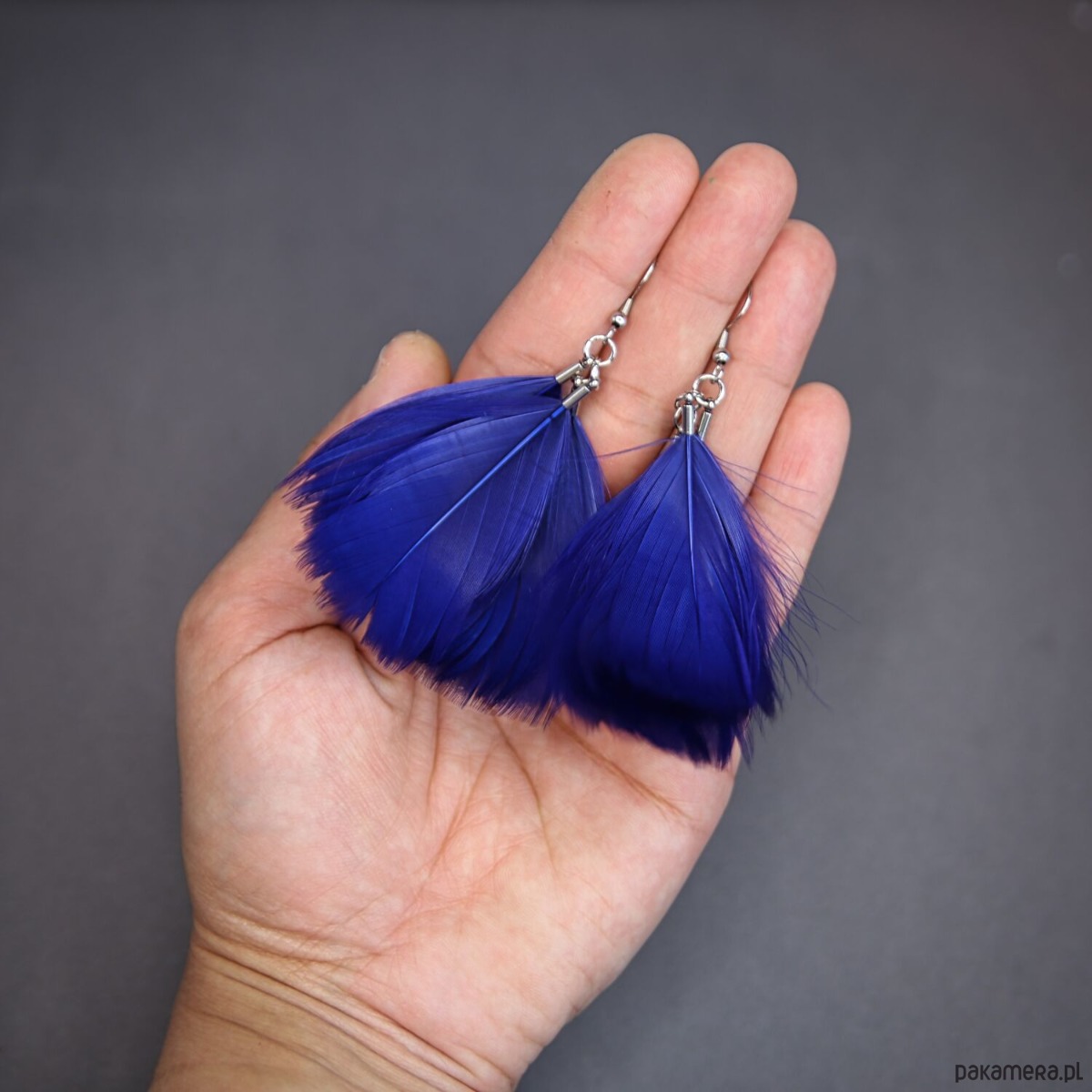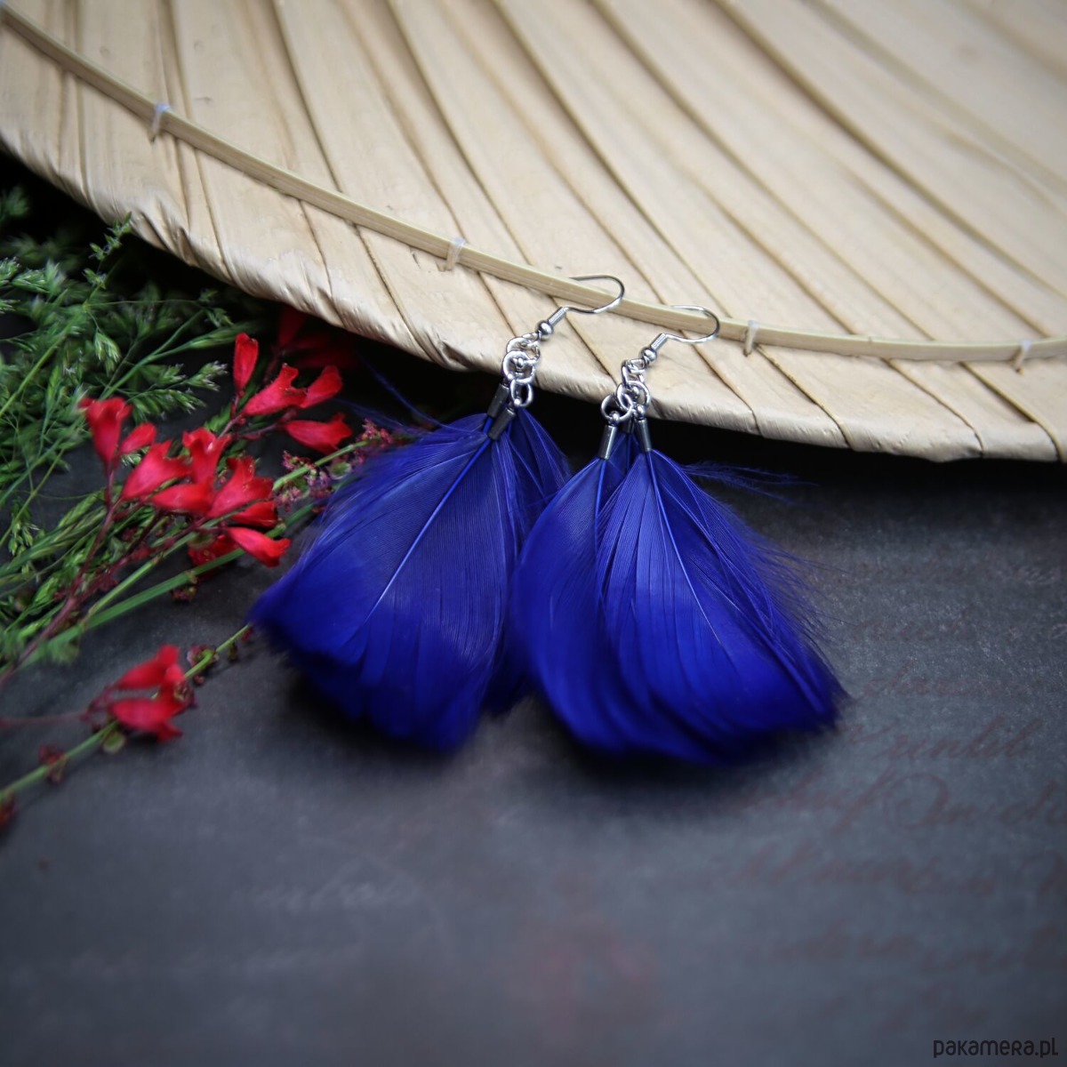 Kolczyki są leciutkie, zwiewne, piórka różnie układają się podczas ruchu.