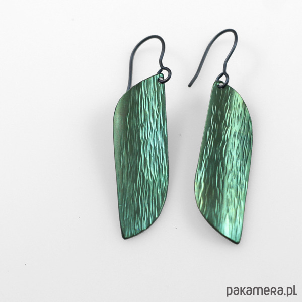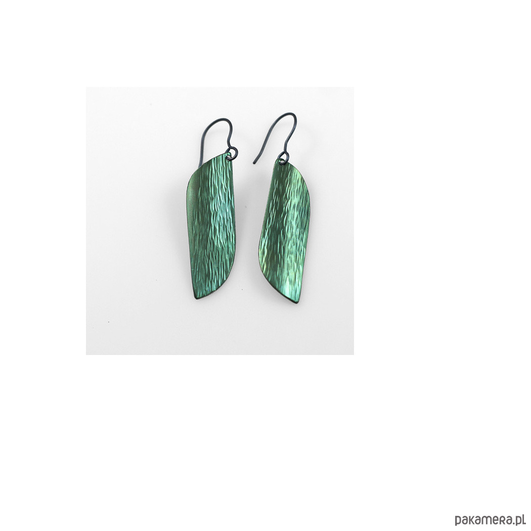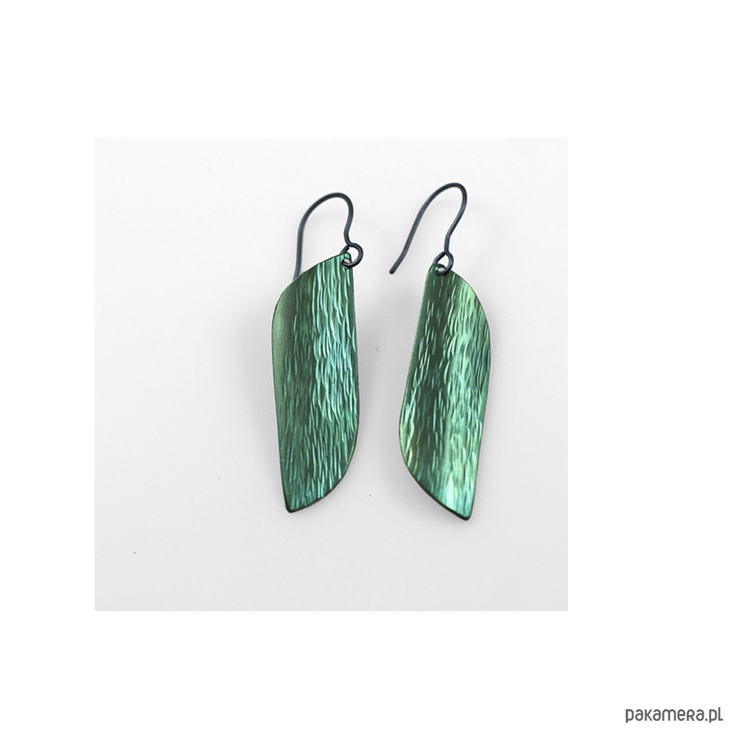 Kolczyki w całości wykonane z oksydowanego tytanu. Opatrzone grawerowanym podpisem.Są wielkości ; długość 4 cm i szerokość 1,3 cm.Długość z tytanowymi biglami 5,5 cm.