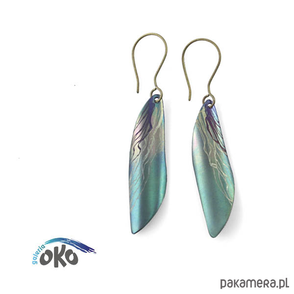 Kolczyki w całości wykonane z oksydowanego tytanu. Opatrzone grawerowanym podpisem.Długość z tytanowymi biglami 6 cm