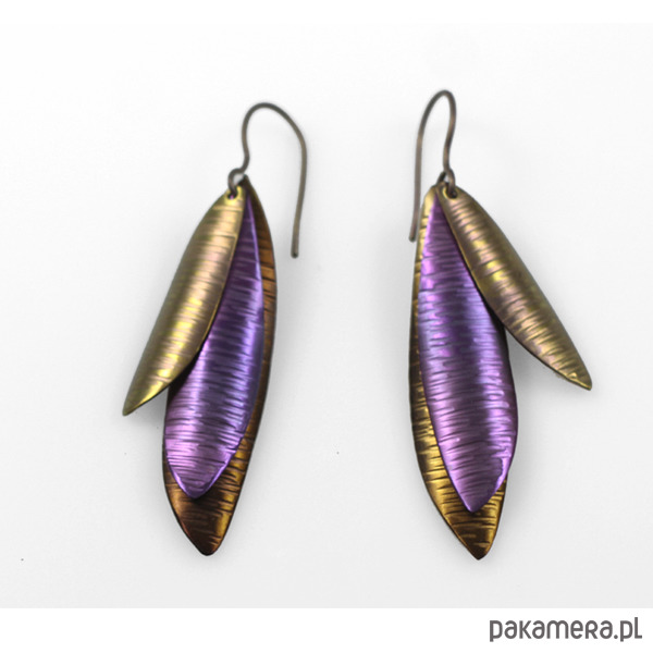 Kolczyki w całości wykonane z oksydowanego tytanu. Opatrzone grawerowanym podpisem.Długość z tytanowymi biglami ok.6 cm.