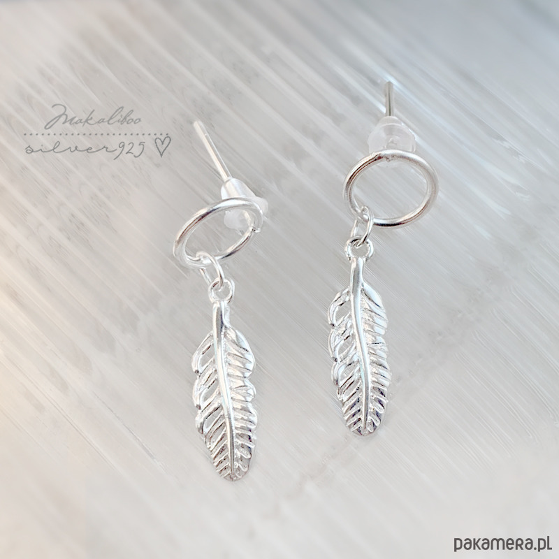 Delikatne, kobiece kolczyki w stylu Boho, mini wkręty wykonane ze stali szlachetnej. Średnica kółeczka 8 mm, długość piórka 1,5 cm długośc całego kolczyka 2,7 cm, Zatyczka silikonowa- idealne na prezent,