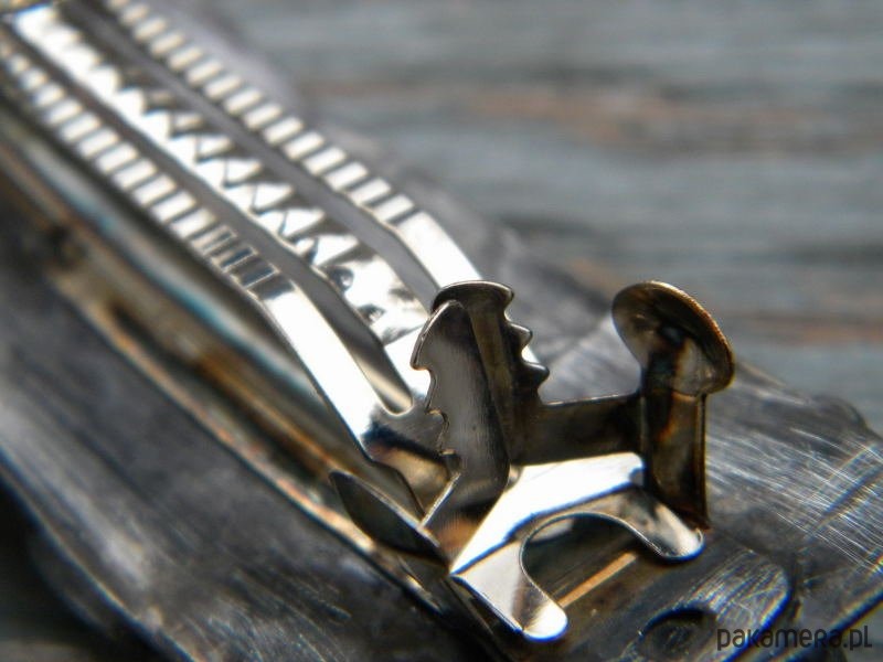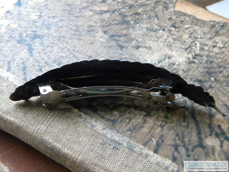 klamra do włosów wykonana z miedzi stylizowanej na stare srebro.