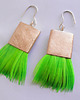 PIÓRKO - stylowy dodatek. Połączenie lekkości piórka i trwałości metalu. Metal niezwykle kontrastuje z naturalnym barwionym puchem. Kolczyki wykonane są z brązu, naturalnie barwione pióra. Brąz - zmatowiony. Bigle otwarte - srebro pr.925. Długość z biglami - 6 cm. Szerokość - 3 cm.