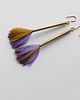 PIÓRKO - stylowy dodatek. Połączenie lekkości piórka i trwałości metalu. Metal niezwykle kontrastuje z naturalnym barwionym puchem. Kolczyki wykonane są z mosiądzu, naturalnie barwione pióra. Mosiądz - zmatowiony. Bigle otwarte - srebro pr.925, pozłacane. Długość z biglami - ok. 10 cm. Szerokość - 2 cm.