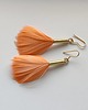 PIÓRKO - stylowy dodatek. Połączenie lekkości piórka i trwałości metalu. Metal niezwykle kontrastuje z naturalnym barwionym puchem. Kolczyki wykonane są z mosiądzu, naturalnie barwione pióra. Mosiądz - zmatowiony. Bigle otwarte - srebro pr.925 pozłacane. Długość z biglami - ok. 5,5 cm. Szerokość - 2 cm. Waga - ok. 2,3 g.