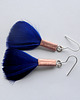PIÓRKO - stylowy dodatek. Połączenie lekkości piórka i trwałości metalu. Metal niezwykle kontrastuje z naturalnym barwionym puchem. Kolczyki wykonane są z miedzi, naturalnie barwione pióra. Miedź - zmatowiony. Bigle otwarte - srebro pr.925. Długość z biglami - 7,5 cm. Szerokość - 3 cm. Waga - ok. 2,5 g.