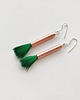 PIÓRKO - stylowy dodatek. Połączenie lekkości piórka i trwałości metalu. Metal niezwykle kontrastuje z naturalnym barwionym puchem. Kolczyki wykonane są z miedzi, naturalnie barwione pióra. Miedź - zmatowiony. Bigle otwarte - srebro pr.925. Długość z biglami - 5 cm.