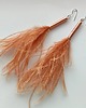 PIÓRKO - stylowy dodatek. Połączenie lekkości piórka i trwałości metalu. Metal niezwykle kontrastuje z naturalnym barwionym puchem. Kolczyki wykonane są z miedzi, naturalnie barwione pióra. Miedź - zmatowiony. Bigle otwarte - srebro pr.925. Długość z biglami - 15 cm.