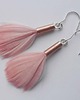 PIÓRKO - stylowy dodatek. Połączenie lekkości piórka i trwałości metalu. Metal niezwykle kontrastuje z naturalnym barwionym puchem. Kolczyki wykonane są z : miedź, naturalne barwione pióra. Miedź : zmatowiona. Bigle otwarte - srebro pr.925. Długość z biglami - 8 cm. Waga: ok. 3 g
