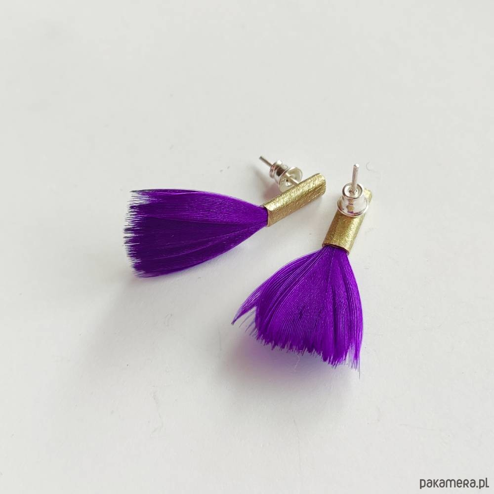 PIÓRKO - stylowy dodatek. Połączenie lekkości piórka i trwałości metalu. Metal niezwykle kontrastuje z naturalnym barwionym puchem.Kolczyki na sztyftach. Kolczyki wykonane są z :mosiądz,srebro- próby 0,925, naturalnie barwione pióra. Mosiądz - zmatowiony. Długość - ok. 3,5cm. Szerokość - 2 cm. Waga - ok. 2 g.