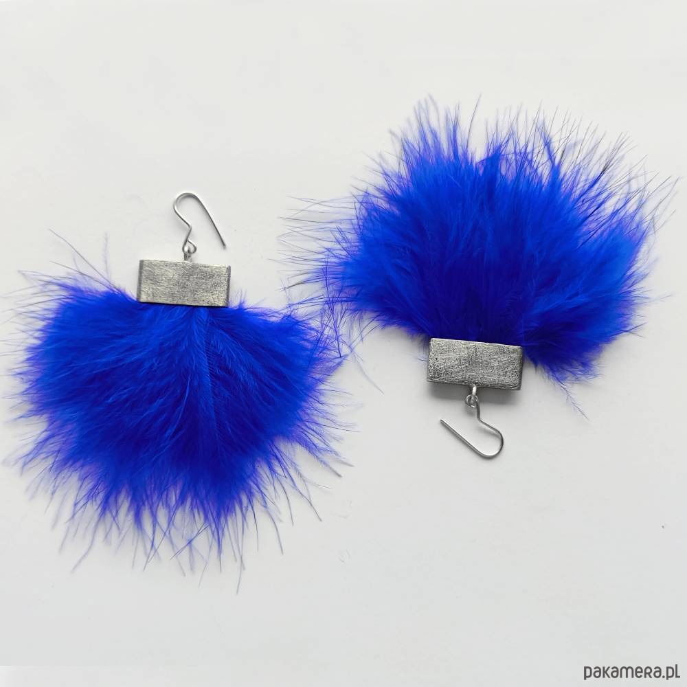 PIÓRKO - stylowy dodatek. Połączenie lekkości piórka i trwałości metalu. Metal niezwykle kontrastuje z naturalnym barwionym puchem. Kolczyki wykonane są z alpaka, naturalnie barwione pióra.Alpaka - zmatowiona. Bigle otwarte - srebro pr.925. Długość z biglami - 8 cm. Szerokość - 8 cm.