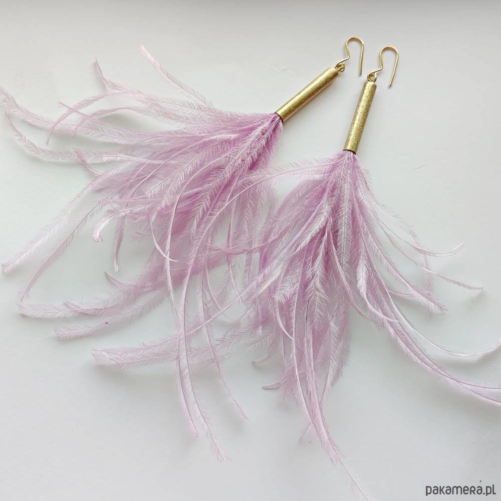 PIÓRKO - stylowy dodatek. Połączenie lekkości piórka i trwałości metalu. Metal niezwykle kontrastuje z naturalnym barwionym puchem. Kolczyki wykonane są z mosiądz, naturalnie barwione pióra. Mosiądz - zmatowiony. Bigle otwarte - srebro pr.925, pozłacane. Długość z biglami - 15 cm.