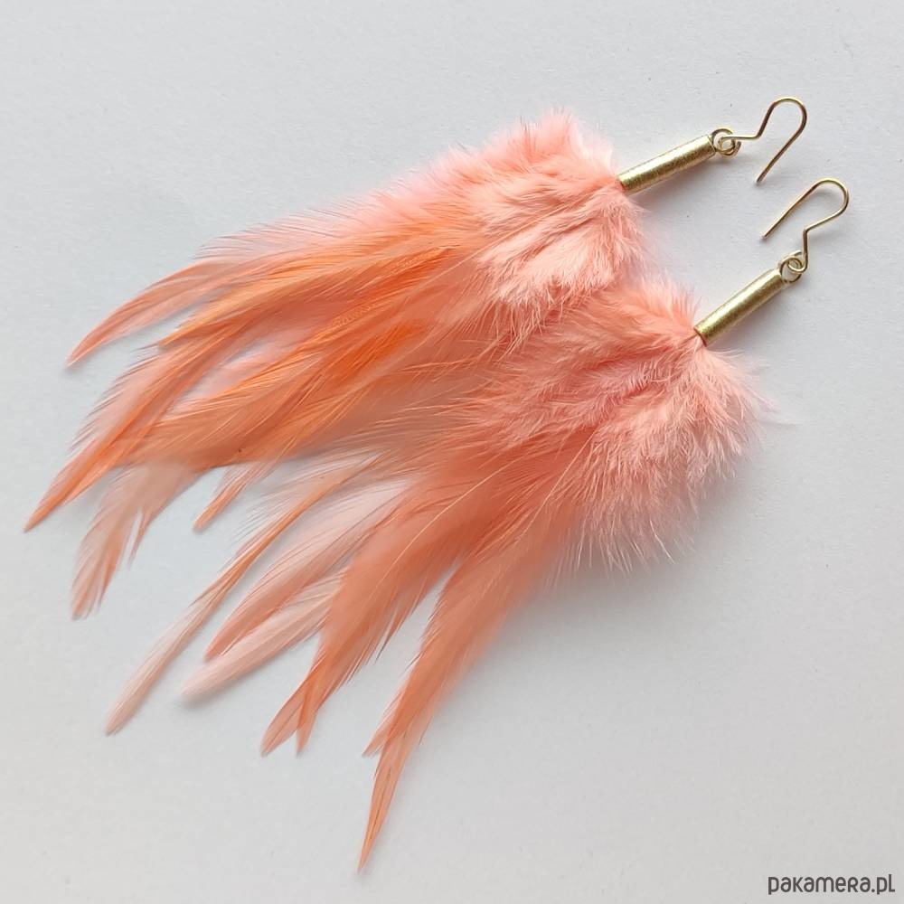 PIÓRKO - stylowy dodatek. Połączenie lekkości piórka i trwałości metalu. Metal niezwykle kontrastuje z naturalnym barwionym puchem. Kolczyki wykonane są z : mosiądz, naturalne barwione pióra. Mosiądz : zmatowiony. Bigle otwarte - srebro pr.925, pozłacane. Długość z biglami - 10cm. Waga: ok. 3 g