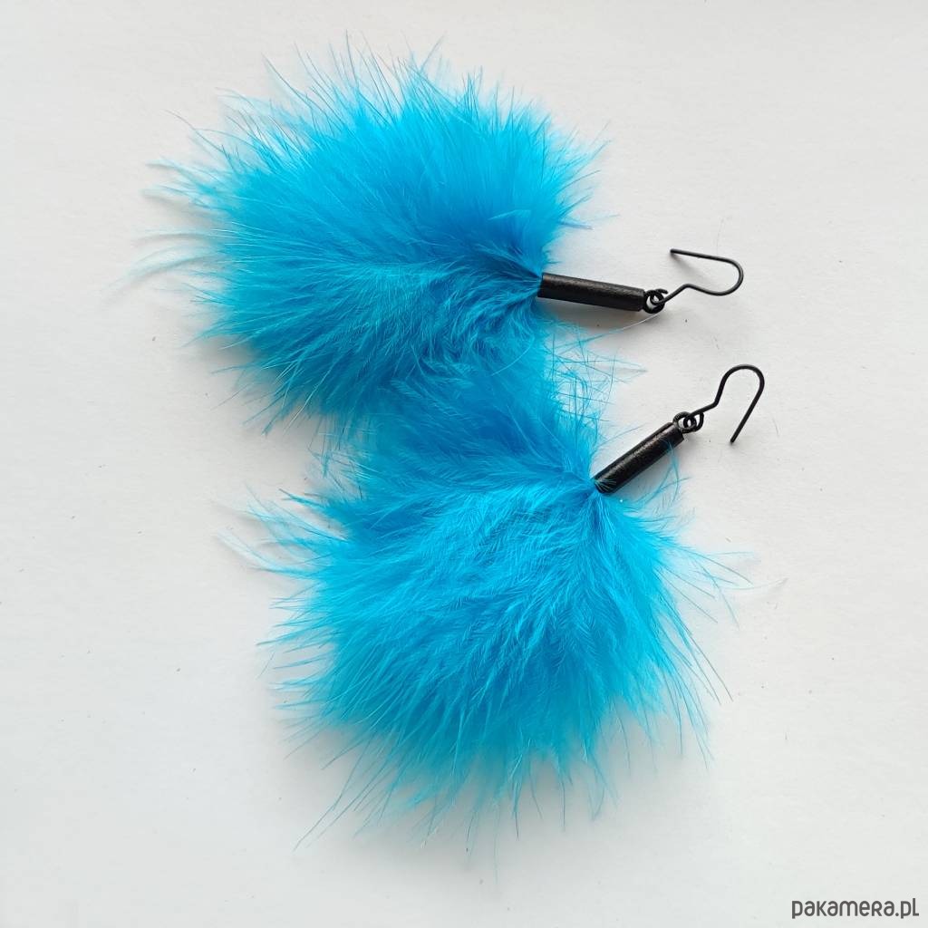 PIÓRKO - stylowy dodatek. Połączenie lekkości piórka i trwałości metalu. Metal niezwykle kontrastuje z naturalnym barwionym puchem. Kolczyki wykonane są z : mosiądz, naturalne barwione pióra. Mosiądz : oksydowany. Bigle otwarte - srebro pr.925,oksydowane. Długość z biglami - 9 cm.