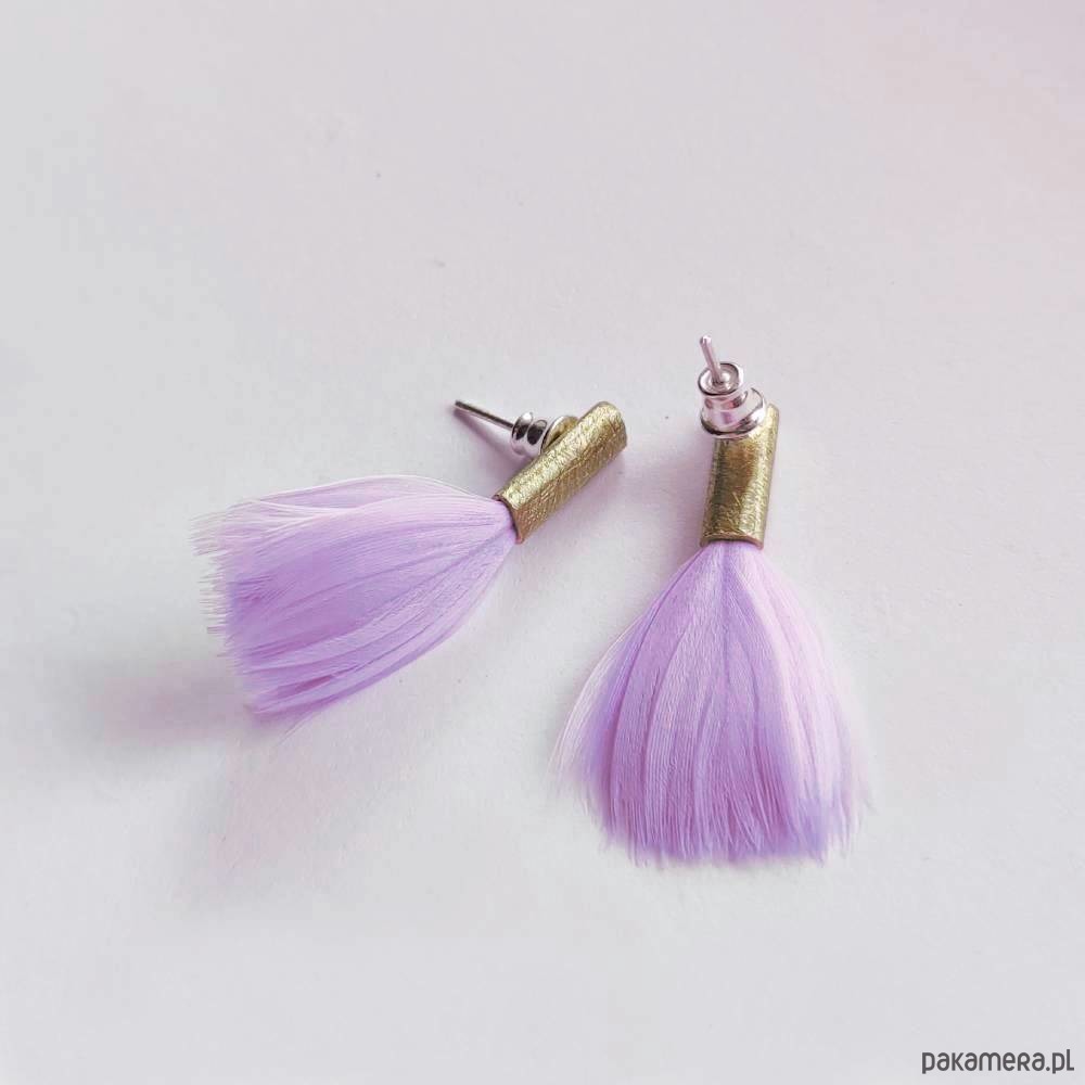 PIÓRKO - stylowy dodatek. Połączenie lekkości piórka i trwałości metalu. Metal niezwykle kontrastuje z naturalnym barwionym puchem.Kolczyki na sztyftach. Kolczyki wykonane są z :mosiądz,srebro- próby 0,925, naturalnie barwione pióra. Mosiądz - zmatowiony. Długość - ok. 3,5cm. Szerokość - 2 cm. Waga - ok. 2 g.