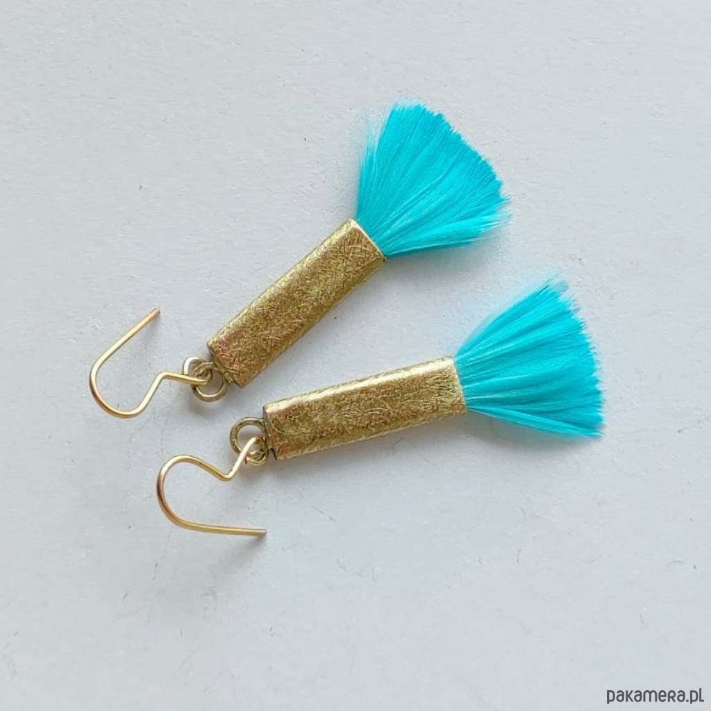 PIÓRKO - stylowy dodatek. Połączenie lekkości piórka i trwałości metalu. Metal niezwykle kontrastuje z naturalnym barwionym puchem. Kolczyki wykonane są z miedzi, naturalnie barwione pióra. Miedź - zmatowiony. Bigle otwarte - srebro pr.925. Długość z biglami - 5 cm.