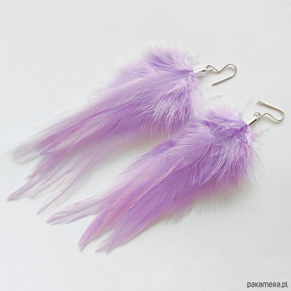 PIÓRKO - stylowy dodatek. Połączenie lekkości piórka i trwałości metalu. Metal niezwykle kontrastuje z naturalnym barwionym puchem. Kolczyki wykonane są z : srebro, naturalne barwione pióra. Bigle otwarte - srebro pr.925. Długość z biglami -14 cm.