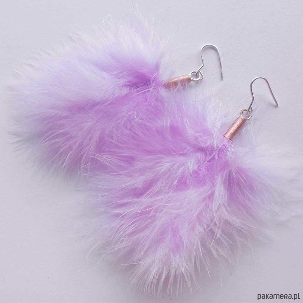 PIÓRKO - stylowy dodatek. Połączenie lekkości piórka i trwałości metalu. Metal niezwykle kontrastuje z naturalnym barwionym puchem. Kolczyki wykonane są z : miedź, naturalne barwione pióra. Miedź - zmatowiona. Bigle otwarte - srebro pr. 925. Długość z biglami - 9 cm.