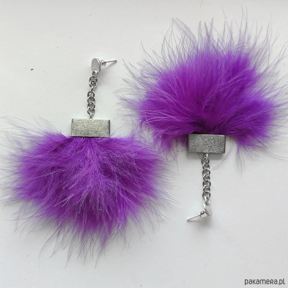 PIÓRKO - stylowy dodatek. Połączenie lekkości piórka i trwałości metalu. Metal niezwykle kontrastuje z naturalnym barwionym puchem. Kolczyki na sztyftach wykonane są z alpaki, srebro ( pr.925), naturalnie barwione pióra. Alpaka - zmatowiona. Długość z ok.9 cm. Szerokość - 5,5 cm.