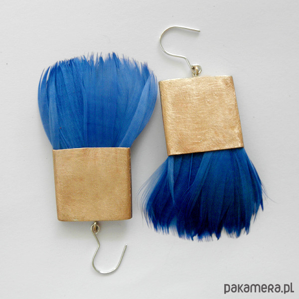 PIÓRKO - stylowy dodatek. Połączenie lekkości piórka i trwałości metalu. Metal niezwykle kontrastuje z naturalnym barwionym puchem. Kolczyki wykonane są z brązu, naturalnie barwione pióra. Brąz - zmatowiony. Bigle otwarte - srebro pr.925. Długość z biglami - 8 cm. Szerokość - 5 cm.