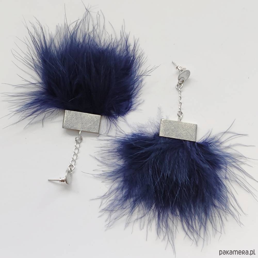 PIÓRKO - stylowy dodatek. Połączenie lekkości piórka i trwałości metalu. Metal niezwykle kontrastuje z naturalnym barwionym puchem. Kolczyki na sztyftach wykonane są z alpaki, srebro ( pr.925), naturalnie barwione pióra. Alpaka - zmatowiona. Długość z ok.9 cm. Szerokość - 5,5 cm.
