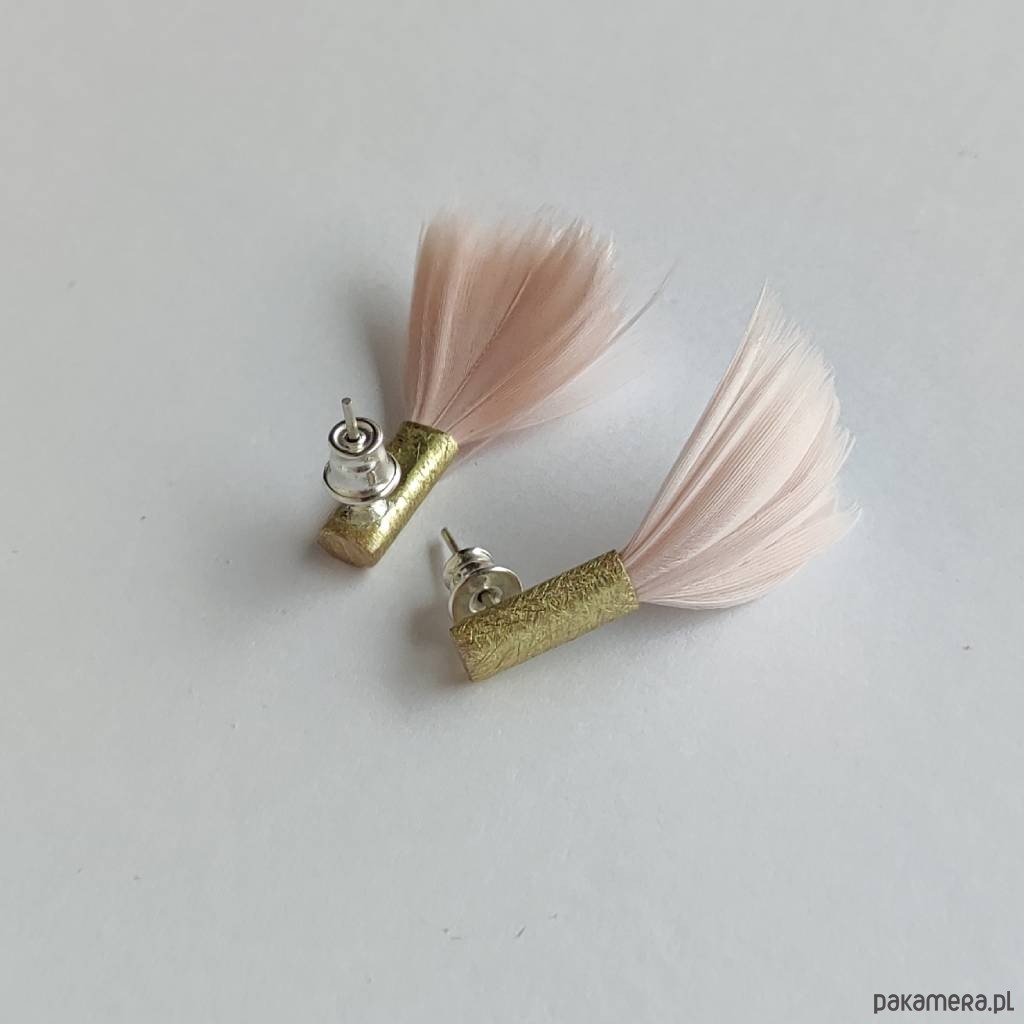 PIÓRKO - stylowy dodatek. Połączenie lekkości piórka i trwałości metalu. Metal niezwykle kontrastuje z naturalnym barwionym puchem.Kolczyki na sztyftach. Kolczyki wykonane są z :mosiądz,srebro- próby 0,925, naturalnie barwione pióra. Mosiądz - zmatowiony. Długość - ok. 3,5cm. Szerokość - 2 cm. Waga - ok. 2 g.