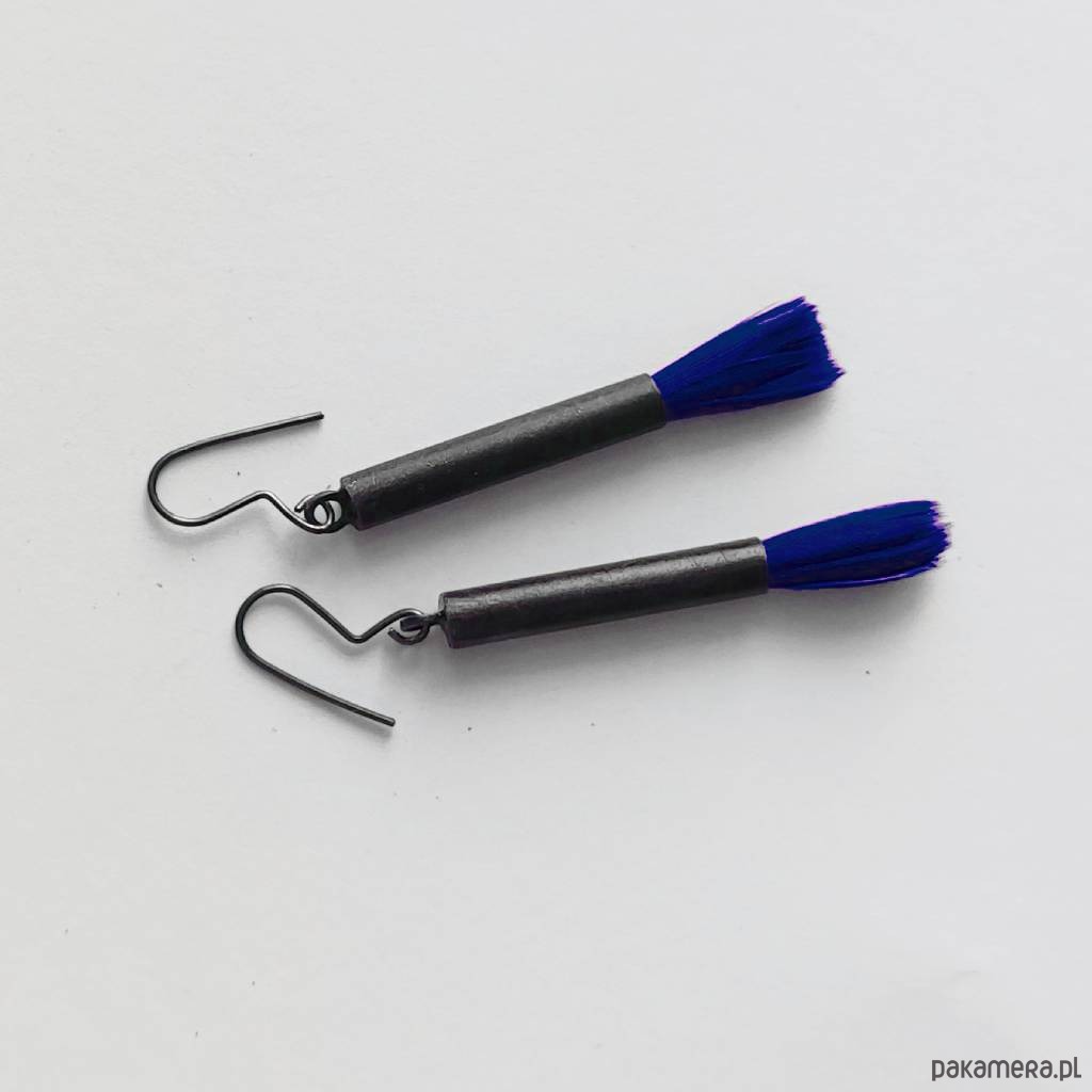 PIÓRKO - stylowy dodatek. Połączenie lekkości piórka i trwałości metalu. Metal niezwykle kontrastuje z naturalnym barwionym puchem. Kolczyki wykonane są z mosiądz, naturalnie barwione pióra. Mosiądz - zmatowiony, oksydowane, przecierane. Bigle otwarte - srebro pr.925 oksydowane. Długość z biglami - 5 cm.