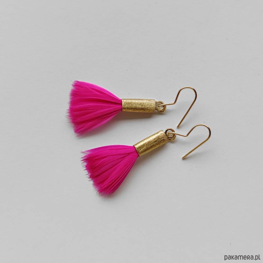 PIÓRKO - stylowy dodatek. Delikatne oraz lekkie kolczyki dodadzą charakteru każdej stylizacji. Metal niezwykle kontrastuje z naturalnym barwionym puchem. Kolczyki wykonane są z miedzi, naturalnie barwione pióra. Miedź - zmatowiony. Bigle otwarte - srebro pr.925. Długość z biglami - 4,5 cm. Szerokość - 1,5 cm. Waga - ok. 2,5 g.