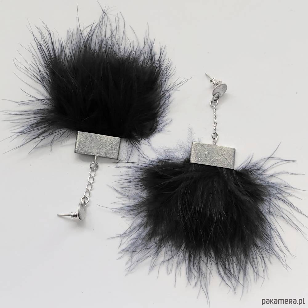 PIÓRKO - stylowy dodatek. Połączenie lekkości piórka i trwałości metalu. Metal niezwykle kontrastuje z naturalnym barwionym puchem. Kolczyki na sztyftach wykonane są z alpaki, srebro ( pr.925), naturalnie barwione pióra. Alpaka - zmatowiona. Długość z ok.9 cm. Szerokość - 5,5 cm.