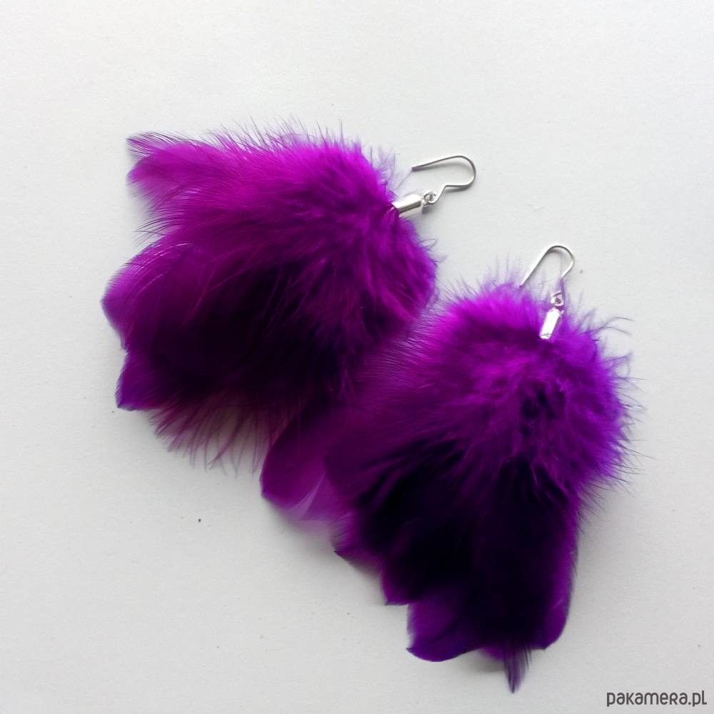 PIÓRKO kolczyki - stylowy dodatek. Połączenie lekkości piórka i trwałości metalu. Metal niezwykle kontrastuje z naturalnym barwionym puchem. Kolczyki wykonane są ręcznie z srebro, naturalnie barwione pióra. Srebro - wypolerowane. Bigle otwarte - srebro pr.925. Długość z biglami - 9 cm.
