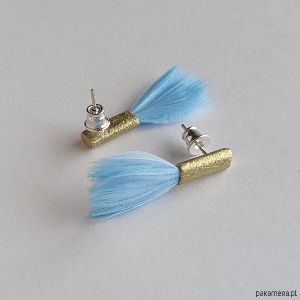 PIÓRKO - stylowy dodatek. Połączenie lekkości piórka i trwałości metalu. Metal niezwykle kontrastuje z naturalnym barwionym puchem.Kolczyki na sztyftach. Kolczyki wykonane są z :mosiądz,srebro- próby 0,925, naturalnie barwione pióra. Mosiądz - zmatowiony. Długość - ok. 3,5cm. Szerokość - 2 cm. Waga - ok. 2 g.