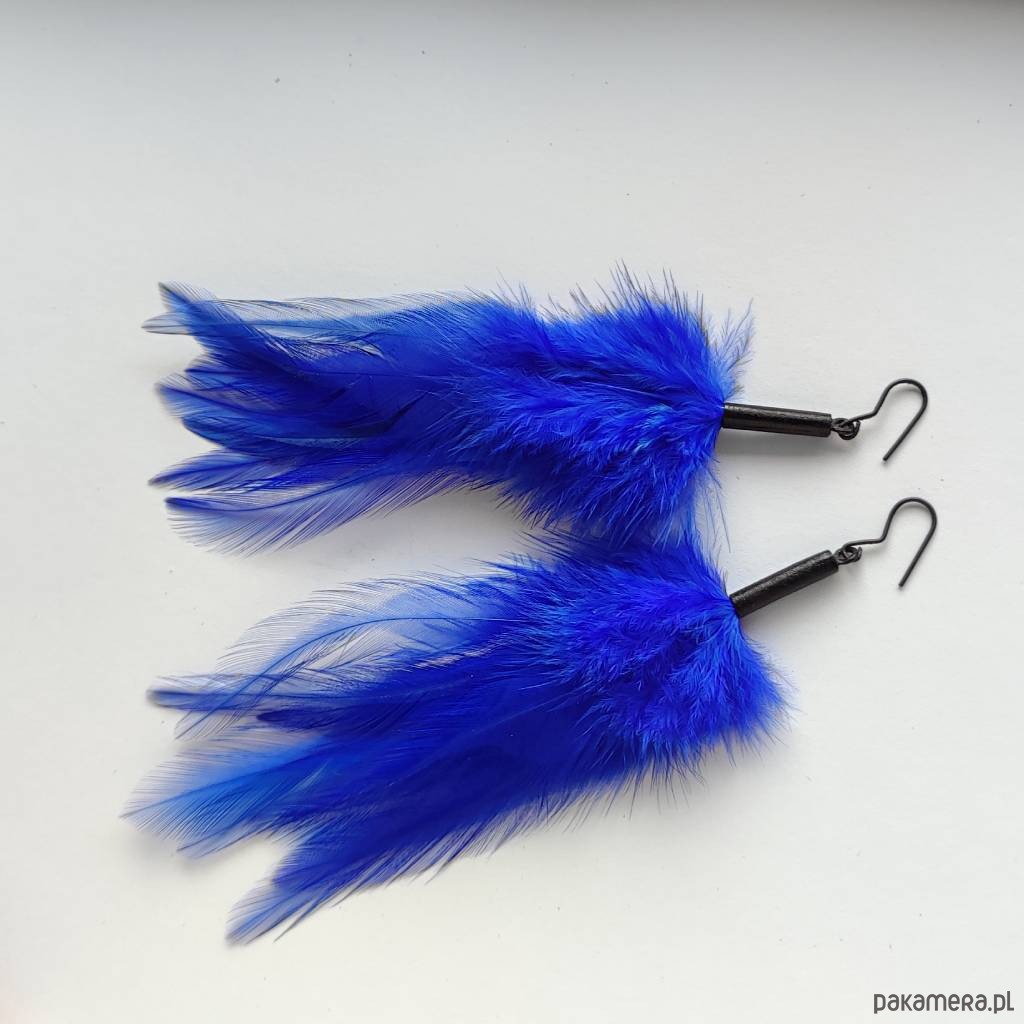 PIÓRKO - stylowy dodatek. Połączenie lekkości piórka i trwałości metalu. Metal niezwykle kontrastuje z naturalnym barwionym puchem. Kolczyki wykonane są z : mosiądz, naturalne barwione pióra. Mosiądz : oksydowany. Bigle otwarte - srebro pr.925,oksydowane. Długość z biglami - 11 cm.