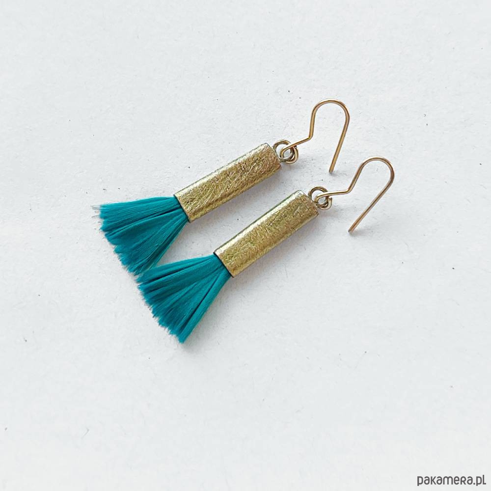 PIÓRKO - stylowy dodatek. Delikatne oraz lekkie kolczyki dodadzą charakteru każdej stylizacji. Metal niezwykle kontrastuje z naturalnym barwionym puchem. Kolczyki wykonane są z miedzi, naturalnie barwione pióra. Miedź - zmatowiony. Bigle otwarte - srebro pr.925. Długość z biglami - 5,5 cm. Szerokość - 1,5 cm. Waga - ok. 2,5 g.