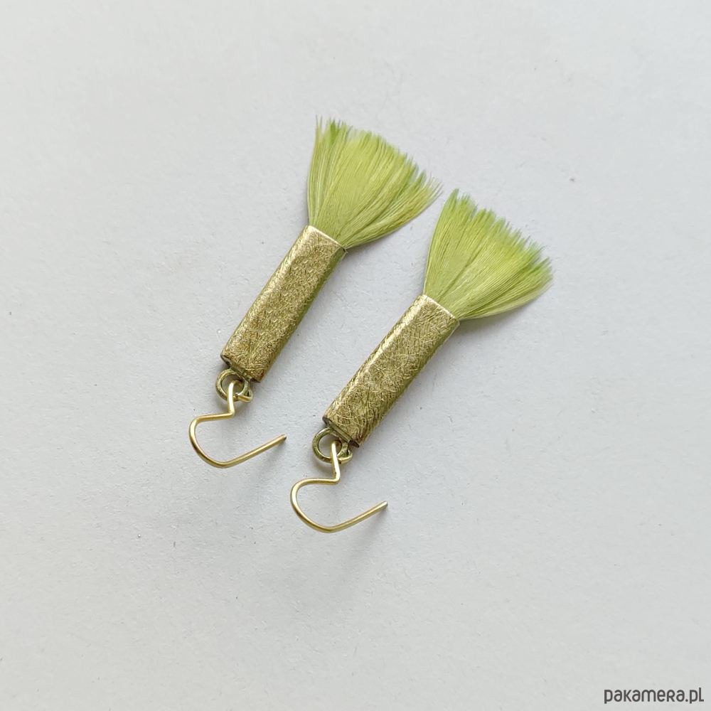 PIÓRKO - stylowy dodatek. Połączenie lekkości piórka i trwałości metalu. Metal niezwykle kontrastuje z naturalnym barwionym puchem. Kolczyki wykonane są z miedzi, naturalnie barwione pióra. Miedź - zmatowiony. Bigle otwarte - srebro pr.925. Długość z biglami - 5,5 cm. Szerokość - 1,5 cm. Waga - ok. 2,5 g.